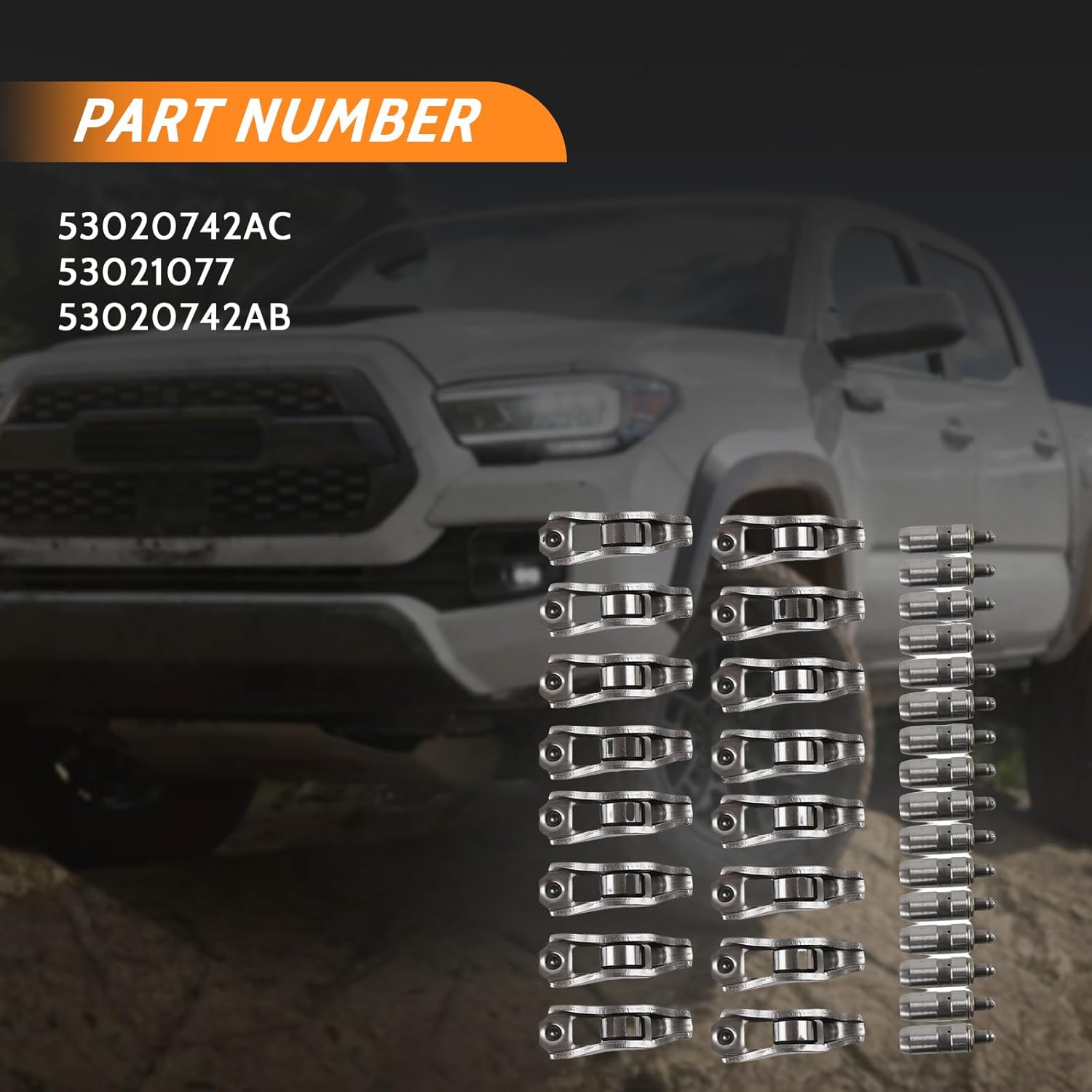 Part Number: Rocker Arm and Lifter Kit 53020742AC 53021077 53020742ABFitment:For 1999-2004 Grand Cherokee WJ 4.7L Specification:Fitment Type: Direct ReplacementProduct Features:(1)Stable performance Attention:1. Should any delay happen due to the logistics company and local customers or duties will inform you. The buyers are supposed to be charged for the possible additional cost such as import taxes and customs duties.2. Please make sure that the model number, part number, and photo are the same as yours before ordering.3. We recommend professional installation when you are not familiar with it. Be careful when installing and testing, otherwise, it will cause damage to the parts.Our Advantages:For years, we have been driving new solutions for the vehicle aftermarket, releasing replacement products engineered to save time and money and increase convenience and reliability. We give repair professionals and vehicle owners greater freedom to fix cars and trucks.