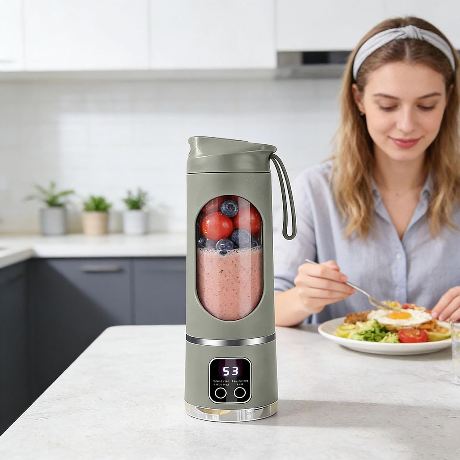 Featrues:Powerful Crushing System: Engineered with a high-speed motor, this portable 16oz wireless juicer effortlessly crushes ice, frozen fruits, and vegetables to create silky-smooth textures. Cordless & Travel-Ready: Designed for on-the-go lifestyles, this portable 16oz wireless juicer features a compact, cordless design that fits easily into your bag. Convenient Drinking Lid: The vessel of this portable 16oz wireless juicer doubles as a travel cup with an included leak-proof drinking lid. One-Touch Control: Experience intuitive blending with a simple button on this portable 16oz wireless juicer, which automatically stops when the cup is removed for safety. Versatile Daily Companion: Beyond just smoothies, use this portable 16oz wireless juicer as a fresh juice blender for fruits and veggies or as a standard water bottle. Product Description:Material: PlasticColor: as the picture showsPackage weight: 530.0gPackage size: 25.5cm