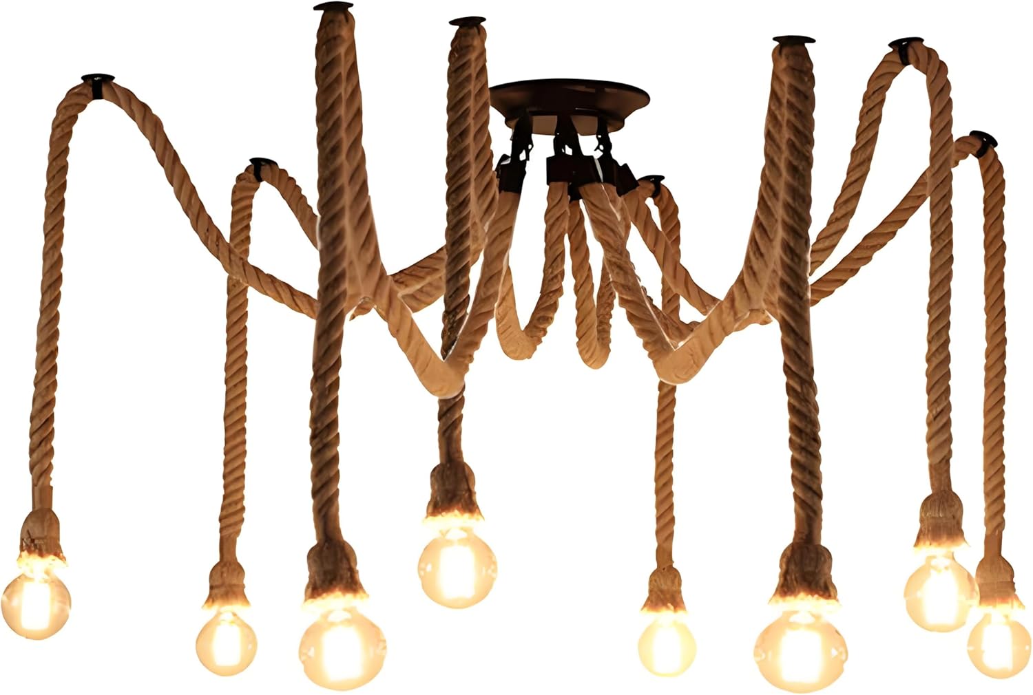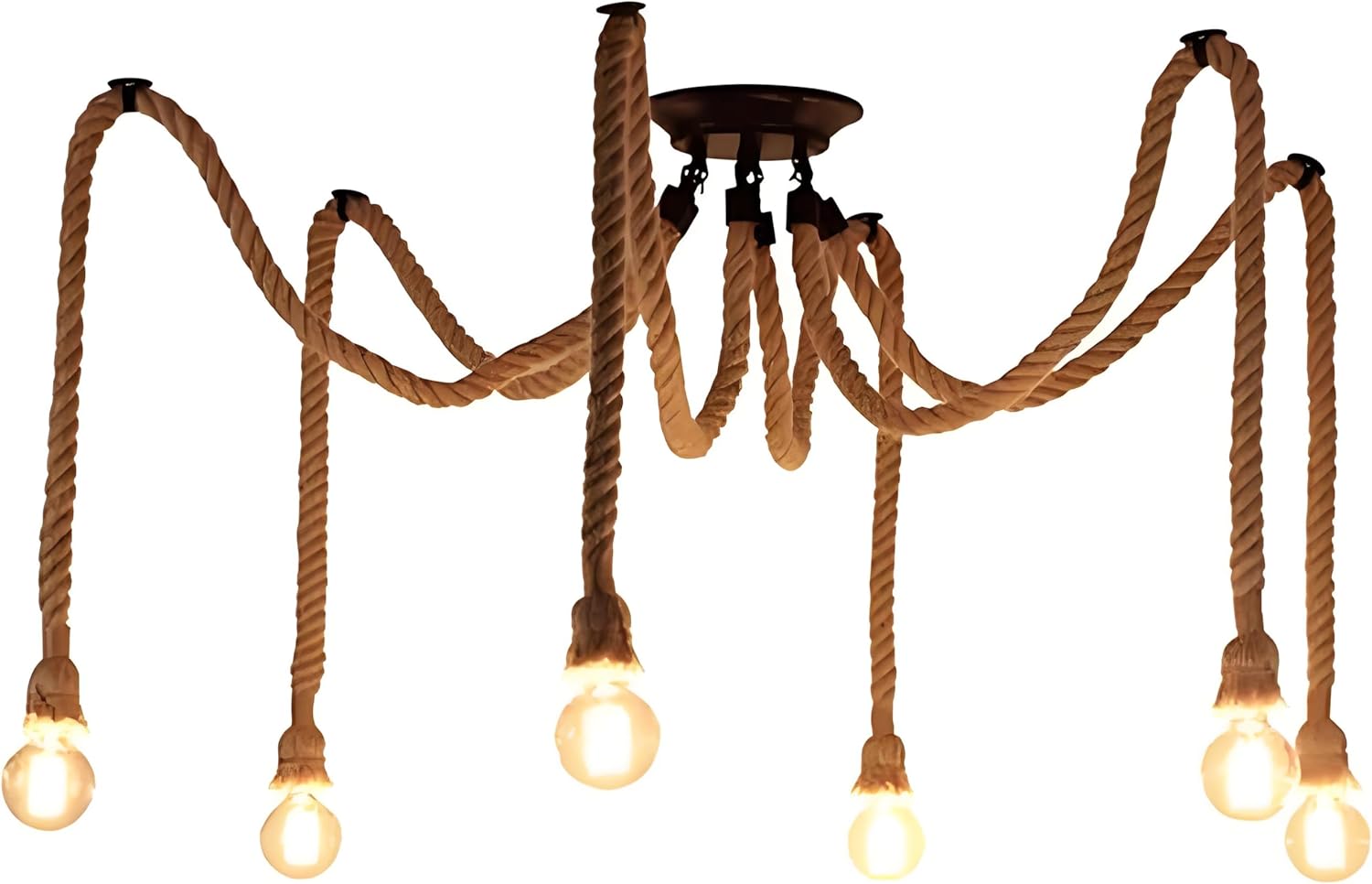 1.High Qualit: Made of hemp rope, the pendant light looks very special and vintage.You can tie various creative and unique knots as your preference. 2.Wire length:The lenth of the rope is 150cm/59" (Approx.)*2.Recommended bulb power: <100w.Voltage: AC90-220V.E26/E27 lamp base, you can choose any bulbs with E26/E27 interface as you want. (No bulbs provided). 3.Use:Creates a clean and simple design, these industrial reproduction vintage fixtures are perfect for home decor,restaurant,coffee shop 4.Easy to Install:Standard E27/E26 screw base.Chain is adjustable.Changing the length of the chain according to your preferences and design. 5.Perfect to create warm, romantic atmosphere for your restaurants, bars and cafes. 6.Body Material:2 Heads Retro Vintage Rope 7.Suggested Room Fit: Dining Room, Bedroom, Living Room, Hallway, Study Room/Office 8.Type:2 Heads Retro Vintage Rope Pendant Lighting 9.Style:Country,Retro,Vintage,Rustic/Lodge,Traditional/Classic 10.Suggested Room Fit: Dining,Room,Bedroom,Living Room,Hallway,Study Room/Office 11.Base diameter:100*20mm 12.Number Of Lights: 1Pcs *1 Meter Retro 2 Heads Hemp pendant lamp base 13.Net Weight(kg): 0.25KG