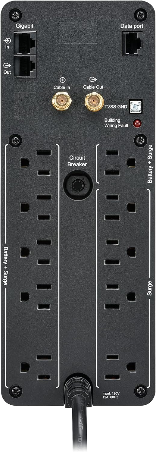 Premium battery backup and surge protection ensures that your valuable electronics remain safe from dangerous power disturbances. Automatic Voltage Regulation (AVR) maintains healthy voltage conditions without using battery power, saving backup runtime for outages when you need it. Active Power Factor Corrected device compatibility keeps PFC devices from unexpectedly shutting down when switching to backup power during an outage. Network dataline surge protection prevents dangerous surges traveling along datalines from damaging your equipment. Hot-swappable, user-replaceable batteries allow you to easily and quickly exchange them without shutting down, without having to interrupt protection. USB ports deliver convenient mobile-device charging. LCD interface displays easy-to-note information on utility and UPS status. Audible alarms notify you of changing utility power and UPS conditions. Select wide-spaced outlets permit the use of transformer-based plugs.