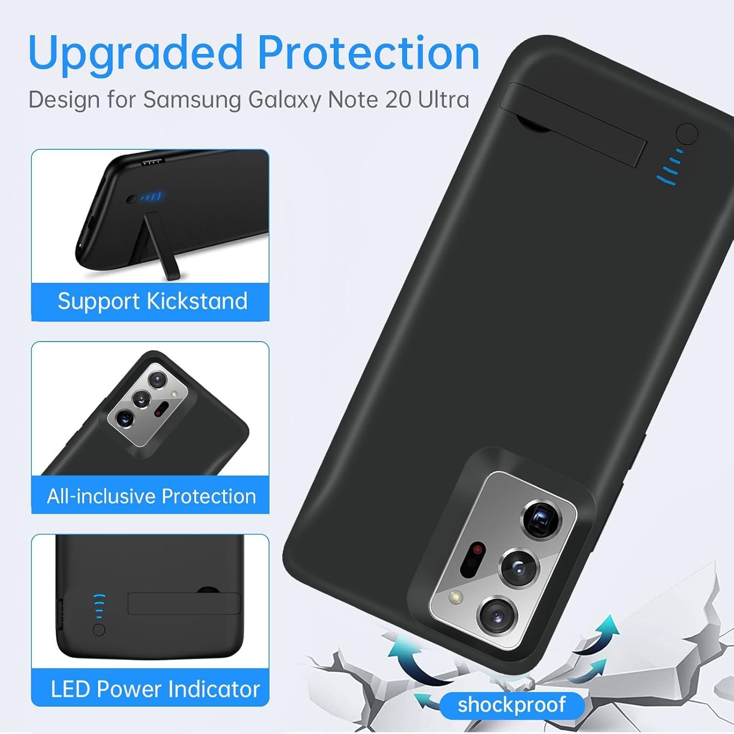 Battery Case for Samsung Galaxy Note 20 Ultra,6000mAh Portable Charging Case Extended External Backup Battery Protective Power Charger Case. Features: Charge your device on the go with this built in external battery pack phone case. Lightweight and slim case featuring a sleek design. Provides a charge 100+% extra battery life to your phone. Easy to use and provides stylish convenience so you no longer have to worry about charging your phone throughout the day and night. The case charges with your own sync cable so there are no extra cables needed. Plug it in overnight for worry-free charging during the day. silky, soft-touch finish of the silicone exterior feels great in your hand. Specifiaction: Applicable models: for Samsung Galaxy Note 20 Ultra Only Battery capacity: 6000mAh Output parameters: 5V 2.0A Input parameters: 5V 2.0A Bare metal weight: 113g Battery type: high quality imported A grade polymer battery Product color: black What you get: 1 x 5000mah Battery charger case for Samsung Galaxy Note 20 Ultra; 1 X User manual Lifetime technical support