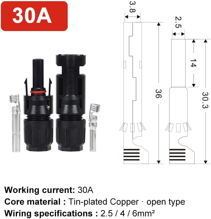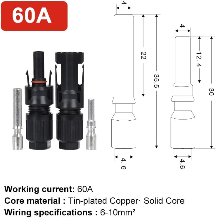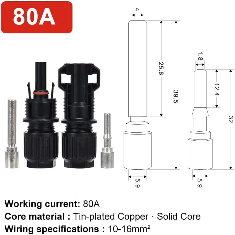 30A/45A/60A/80A Solar Connector Male And Female Plug 1000V DC Photovoltaic Connectors For 2.5/4/6/10/16mm2 IP67 Waterproof - (Color: 80A, Package: 5 Pairs)