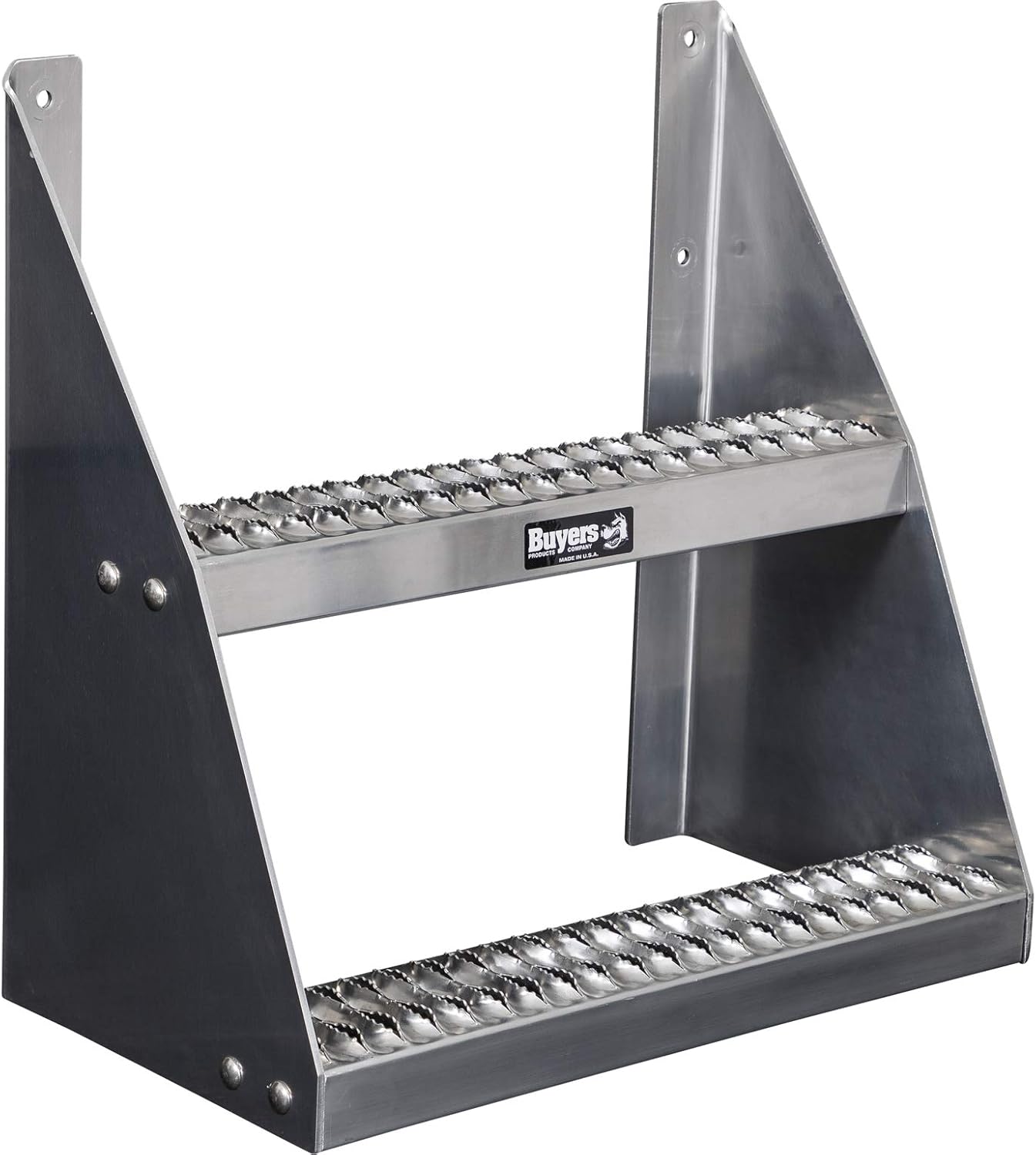24 Inch model: Buyers Products Class 8 Aluminum Frame Steps provide simple, secure access to the frame area on heavy-duty tractors. The open grip strut surface delivers superior traction and quickly sheds mud, snow, and road grime, making it a smart choice for fleets and drivers who operate in challenging weather. A universal design fits leading brands — Peterbilt, Kenworth, International, Freightliner, Western-Star, Volvo, and Mack — so you can standardize across your equipment. The step is built from corrosion-resistant aluminum with .188 inch thick sides to stand up to daily use and impacts from road debris while keeping weight low. Installation is straightforward thanks to the universal 4-bolt mounting pattern, giving flexibility to locate the step where it best serves your application. The grip strut is easy to clean to maintain traction over time. Choose the size that matches your access needs and available frame space; mounting hardware is sold separately.