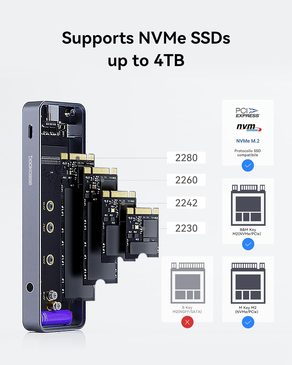 USB 3.2 Type-C Tool-Free Enclosure for M.2 PCIe NVMe