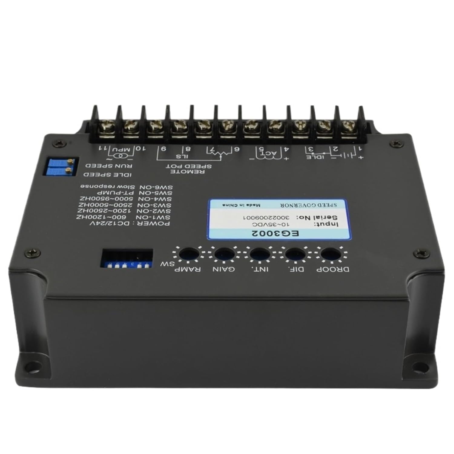 Speed ControlThe EG3002 electronic controller takes a signal from a magnetic pickup (MPU) and compares it with a preset enginespeed to control drive voltage to the actuator to maintain constant engine speed. The EG3002 has engine startsmoke suppression, IDLE Speed control, Ramp Time setting, applicable for MPU frequency range of 600 to 9500 Hz.The unit has settings for use with high-gain (PT PUMP) engines and "extreme slow response" engines.==========Model Number : EG3002Weight : 0.7kgQuality : High levelDimensions : 147*114*50mmOperating Voltage : 10-32VdcModel : EG3002