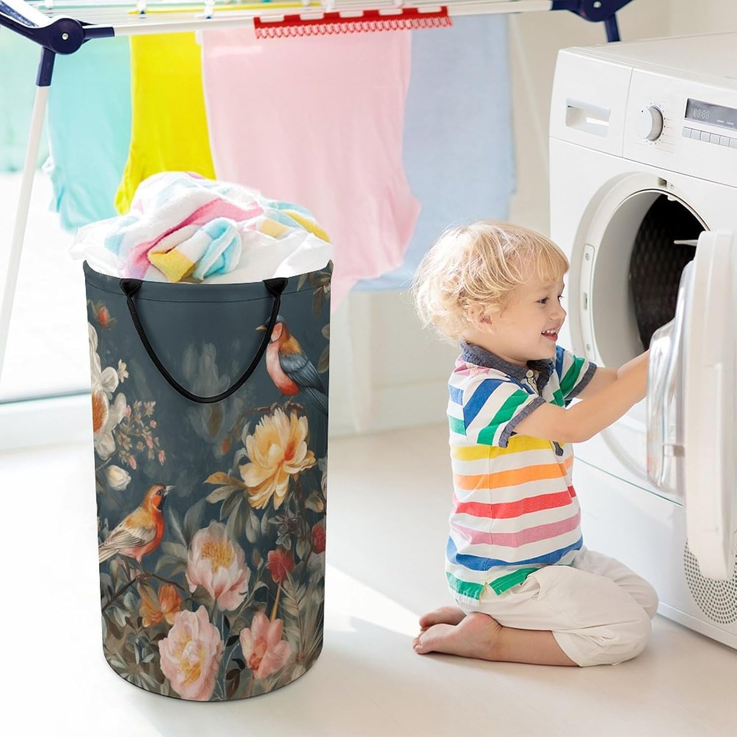 The pattern of the Flowers Birds hamper is printed with exquisite patterns, which makes the product more attractive.Chic design allows it to be used in the living room to hold throw blanket, pillows, and reading materials, as well as in the bathroom for towels, or as a laundry hamper.The laundry hamper adopted collapsible design, equipped with handles. It is lightweight and portable for using, storing, and moving conveniently.Flowers Birds Clothes hamper is suitable to store dirty clothes washing, place in the room to store toys, and other household goods, keep the house clean and tidy. Perfect laundry hamper for home, office, closet organizer, bedroom, bathroom, college dorm, etc.Gets out of your way when you need it to. This storage basket or laundry hamper is a good gift, which not only meets everyday storage needs but also carries deep care and love, a perfect way to turn thoughtfulness into warmth.
