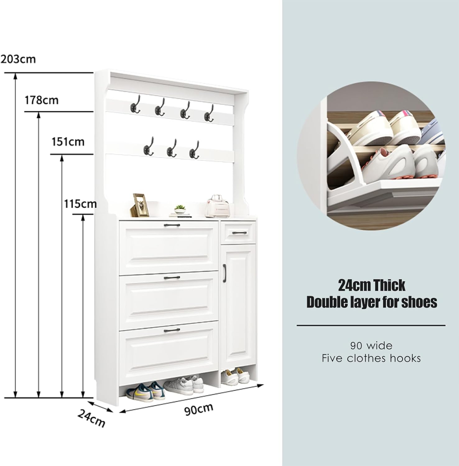 ➤ Why choose our shoe bench? ✔ This hall tree combines the function of coat rac, shoe bench and storage shelf, mae everything handy especially when you‘re in a hurry. This wood hall tree can effectively maximize your entryway hallway space with storage, can easily eep your home tidy and clean! ➤ Specification: ● Size: 80x24x203cm,90x24x203cm,100x24x203cm ● Shoe stool padding: MDF ● Frame Materials: MDF ● Finish Option: White ● Assembly Required: Yes ● Product Care: Wipe with clean cloth when needed. ➤ Pacage Included: ● 1x Coat rac ➤ Notes: ☎ Due to different shooting angles, there will be color difference problems, please refer to the actual product! ☎ All dimensions are manually measured, there may be deviation errors, please refer to the actual product!