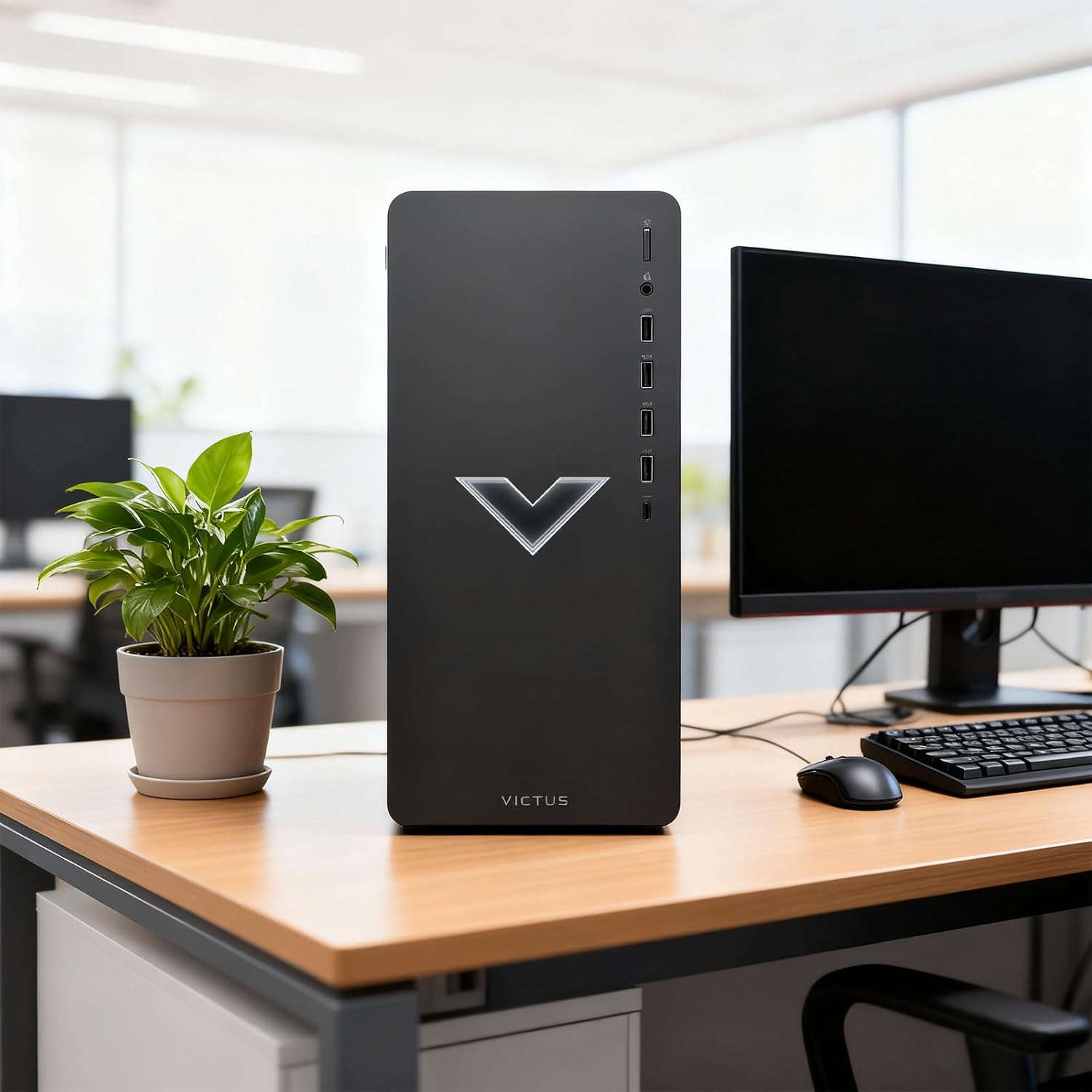 Brand: HP Color: Black Processor Type: AMD Ryzen 5 Memory RAM Type: DDR4 Processor Model: AMD Ryzen 5 5600G (up to 4.4 GHz max boost clock, 16 MB L3 cache, 6 cores, 12 threads) Graphics Card Model: AMD Radeon Number of USB Ports: 4 Connection Type: USB Wireless Technology: Wi-Fi 6 (IEEE 802.11ax) Operating System: Windows 11 Home Data Storage Type: SSD (NVMe) Primary Use: Home Graphics Memory Capacity: Integrated Memory Number of PCI Slots: 2 Processor Speed: 4.4 GHz Number of Cores: 6 Dimensions (Overall): 13.27 inches (H) × 11.71 inches (W) × 6.1 inches (D) Weight: 13.91 pounds Electronics Condition: New
