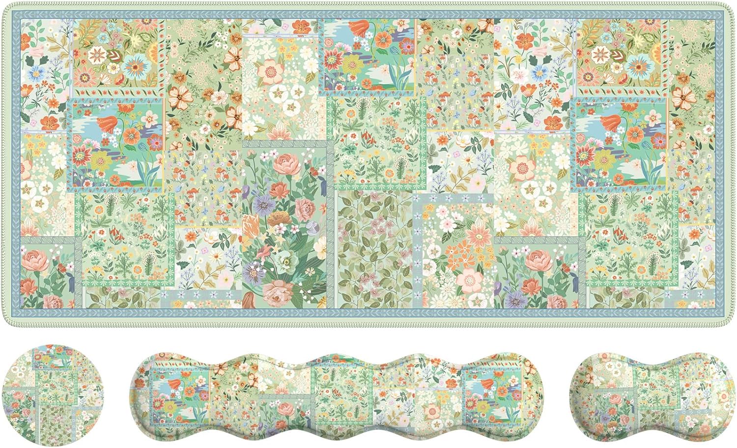 Floral 4-Piece Ergonomic Mouse Pad Set – Where Comfort Meets Nature-Inspired DesignTransform your workspace into a serene and stylish retreat with our Floral Vine 4-piece ergonomic mouse pad set. Featuring a square mouse pad, keyboard wrist rest, mouse wrist support, and a matching coaster, this set blends comfort, beauty, and functionality in one coordinated design.🌸 Elegant Botanical AestheticInspired by delicate vine and floral patterns, the design adds a soft, calming touch to any desktop. The subtle colors and organic lines bring a sense of nature indoors, perfect for those who appreciate both style and tranquility.💻 Ergonomic Support for Daily ComfortEach piece is made with high-density, slow-rebound memory foam to gently support your wrists and reduce pressure, helping to prevent strain during long hours of work, study, or gaming.🧲 Stable Non-Slip BaseEquipped with a textured rubber backing, all components stay securely in place, providing a stable surface for accurate mouse control and uninterrupted workflow.🖱️ Smooth, Durable SurfaceThe soft Lycra fabric offers a smooth glide for your mouse while maintaining durability for everyday use. Reinforced edges help prevent fraying over time, keeping your setup looking fresh and neat.☕ Coordinated Coaster IncludedA matching floral coaster completes the set, making space for your favorite drink while protecting your desk from spills or heat marks.Whether you’re refreshing your home office or looking for a thoughtful gift, this 4-piece floral set delivers comfort, elegance, and practicality—perfect for anyone who values form and function.