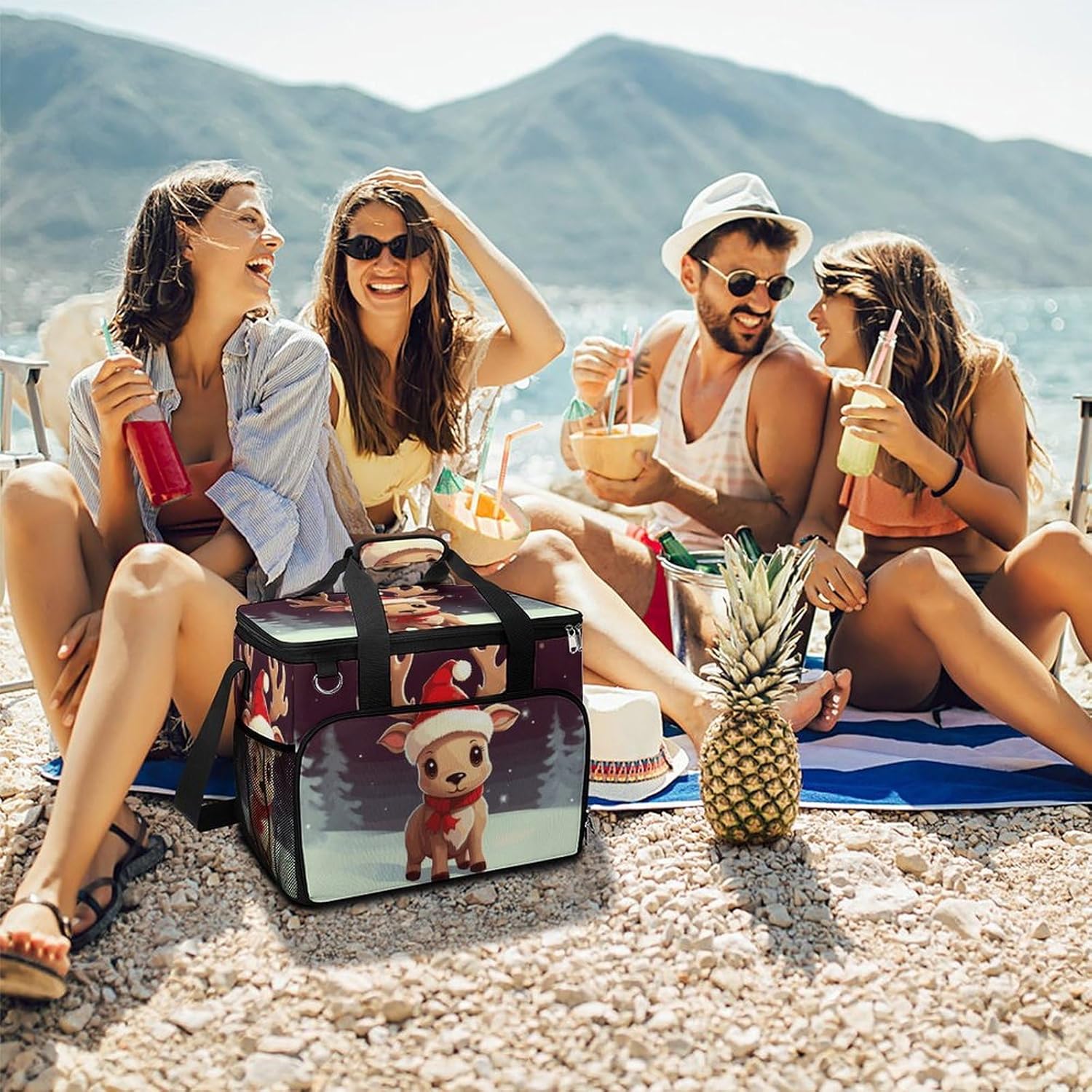 Take Your Meals Anywhere with Cute Christmas Reindeer Grocery BagsFood Container Carrier Oxford Fabric Picnic Bag Heat Retaining Food Bag Camping Cooler BBQ Accessories Cute Picnic Bag with Pockets Insulated Food Bag for Work Insulated Lunch Tote Bag Camping BagTemperature Control That WorksThe upgraded aluminum foil lining creates an effective thermal barrier. Your drinks stay refreshingly cold, and your hot dishes maintain their warmth for hours. No more lukewarm meals during outdoor outings.Thoughtful Storage DesignTwo side mesh pockets - Perfect for water bottles or umbrellasFront zippered pocket - Keeps keys, phone, or condiments organizedInternal mesh pocket - Stores utensils, napkins, and small essentialsMain compartment - Spacious enough for food containers and snacksBuilt for Daily AdventuresConstructed from high-density oxford fabric with reinforced stitching at stress points. The double zippers are sturdy and smooth-operating. Reinforced handles let you carry heavy loads with confidence.Carry Your WayHandles for quick grabbingStands upright for easy packing and accessPerfect For:Picnics in the parkBeach days and pool partiesCamping and hiking tripsOutdoor concerts and festivalsDaily work lunchesGym and fitness classesRoad trips and travelGrocery shoppingSpecifications:Dimensions: 15.4 x 11.8 x 11.8 inchesMaterial: High-density Oxford fabricLining: Aluminum foil (insulated)Closure: Sturdy double zippersPockets: 2 side mesh, 1 front zipper, 1 internal meshCare: Hand wash or machine wash, do not bleachNote: Food containers and utensils shown in images are not included.