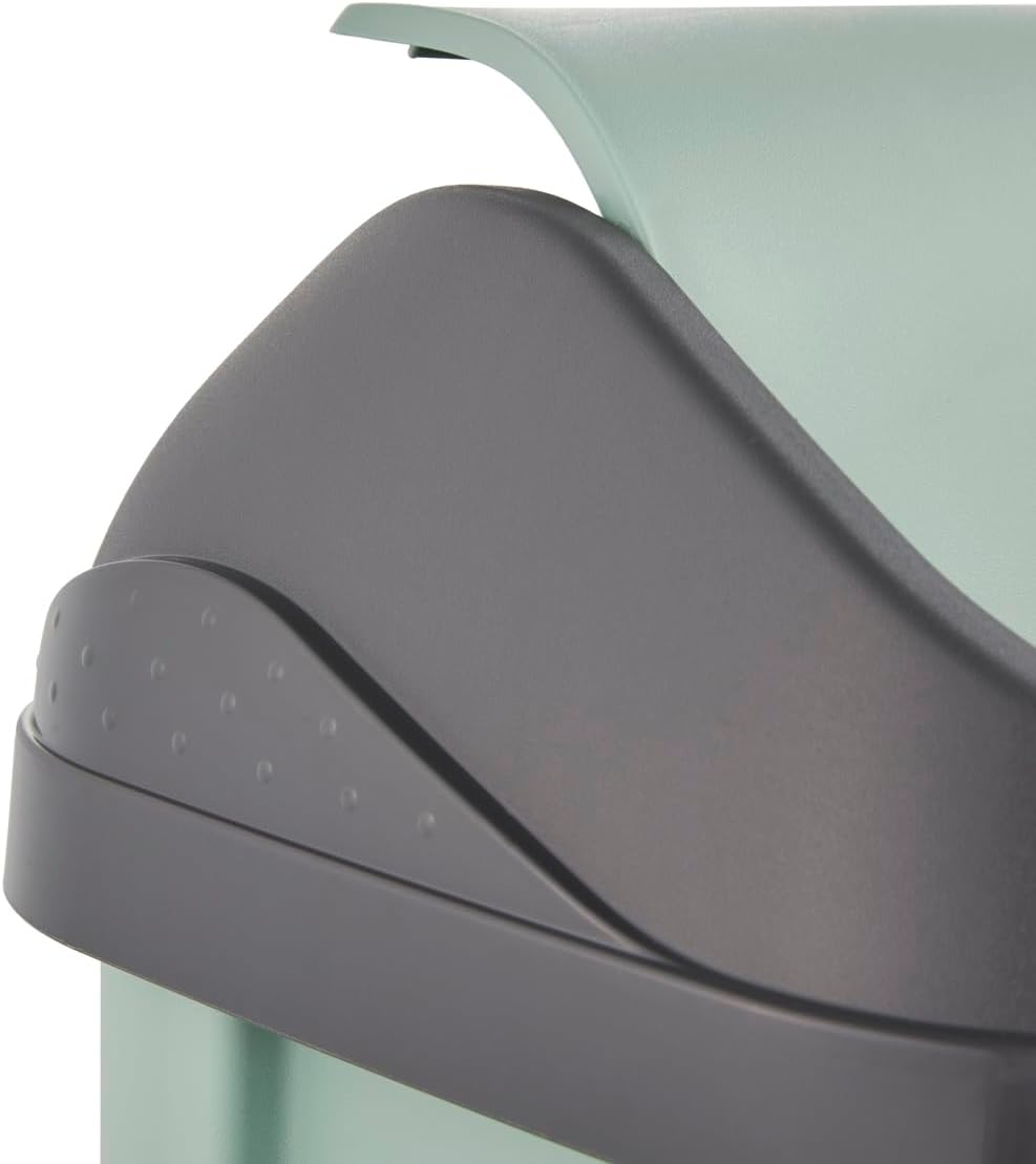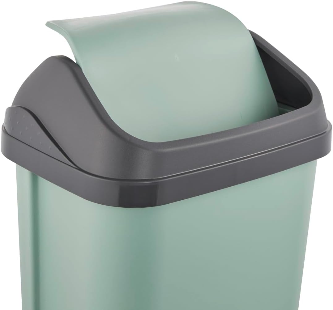Compact bin with practical swing lid and 10 l capacity - For waste bags with a volume of 20 - 30 litres - Convenient waste disposal: easy to open swing lid with pleasant feel, discreet design with contrasting lid holder - Easy to clean: lid and lid holder removable, wipe clean with a damp cloth or sponge - Made in Europe, high-quality, sturdy plastic (PP), free from BPA and other soft materials. 1000, No Abof harmful substances. Box contents: 1 Swantje bin, dimensions: 33.5 x 25.5 x 53.5 cm, weight: 0.805 kg, colour: Nordic green, item number: 1030731500000