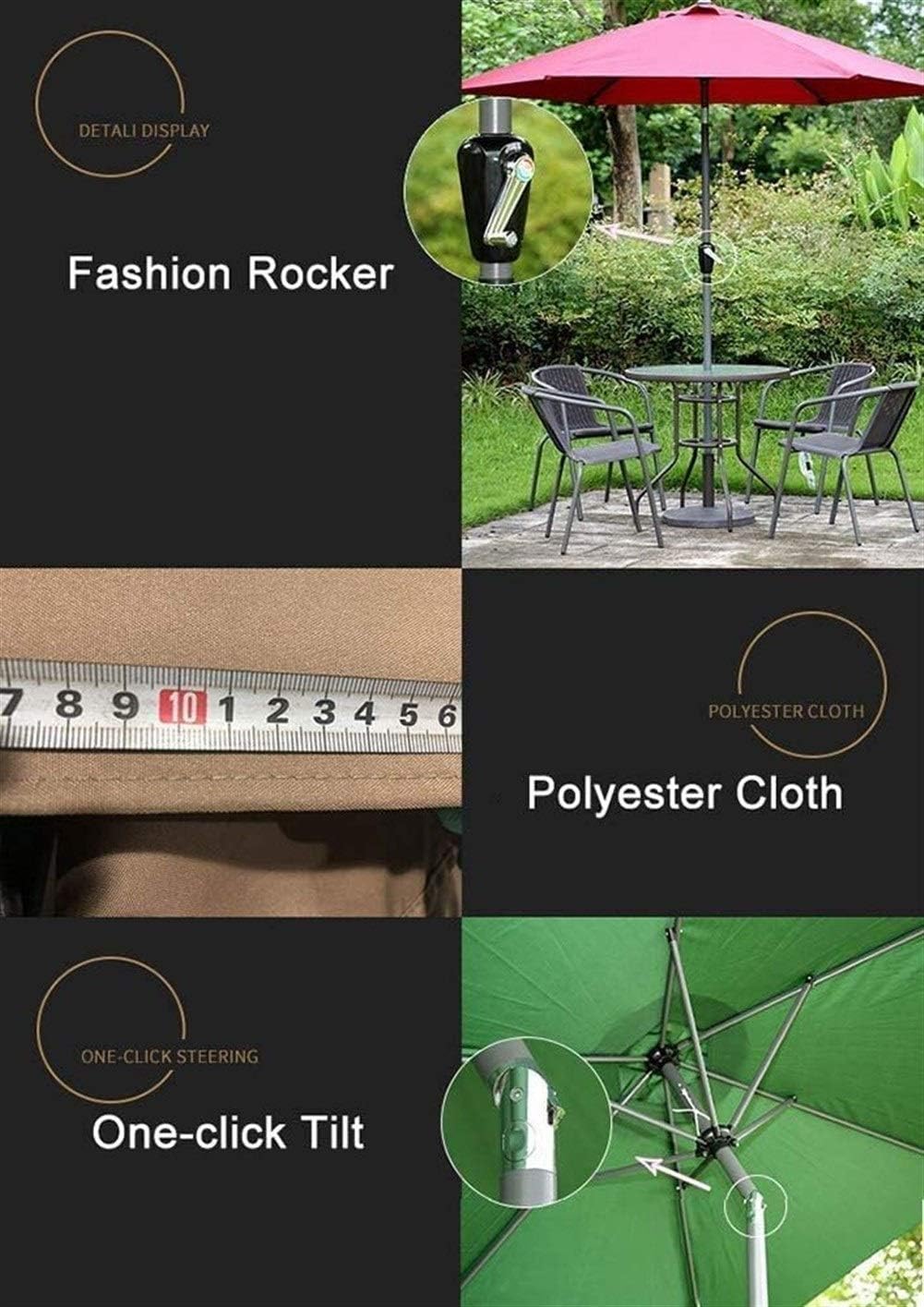 This parasol is an excellent choice for staying cool when it's sunny outside. canopy filters most UV rays, keeping you protected from potential sun damage, as well as helping to reduce sunstroke. A beautiful and rar unique which will pair with your existing garden decor effortlessly.> Overview:> - Umbrella Type: Market umbrella> - Size: 9ft / 270cm> - Canopy Shape: Round> - Pole: iron, Dia.1.50 inch (38 mm)> - Umbrella cloth: UV resistant polyester fabric,Waterproof> - Open method: Manual> - Air vent: Yes. It provides basic wind and heat venting> - Commercial/Residential: Both> > Tips:> *Please close umbrella when you do not use in bad wear so umbrella will have a longer performance. > > How to clean :> Brush off loose dirt.> Spray on a cleaning solution of water and mild soap.> Use a soft bristle brush to clean.> Allow cleaning solution to soak into fabric.> Rinse thoroughly until all soap residue is removed.> Air dry.> > Package Includes: > 1x Outdoor umbrellas{/p}