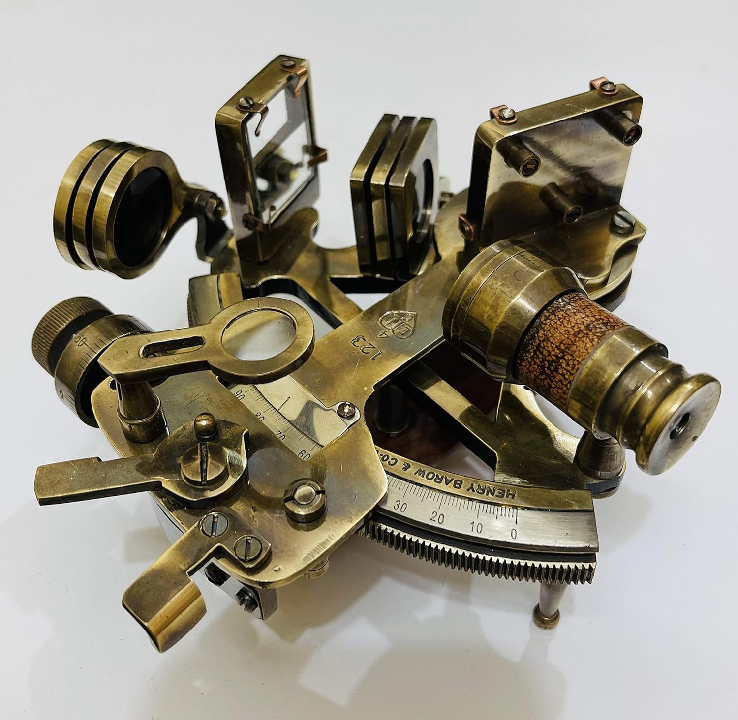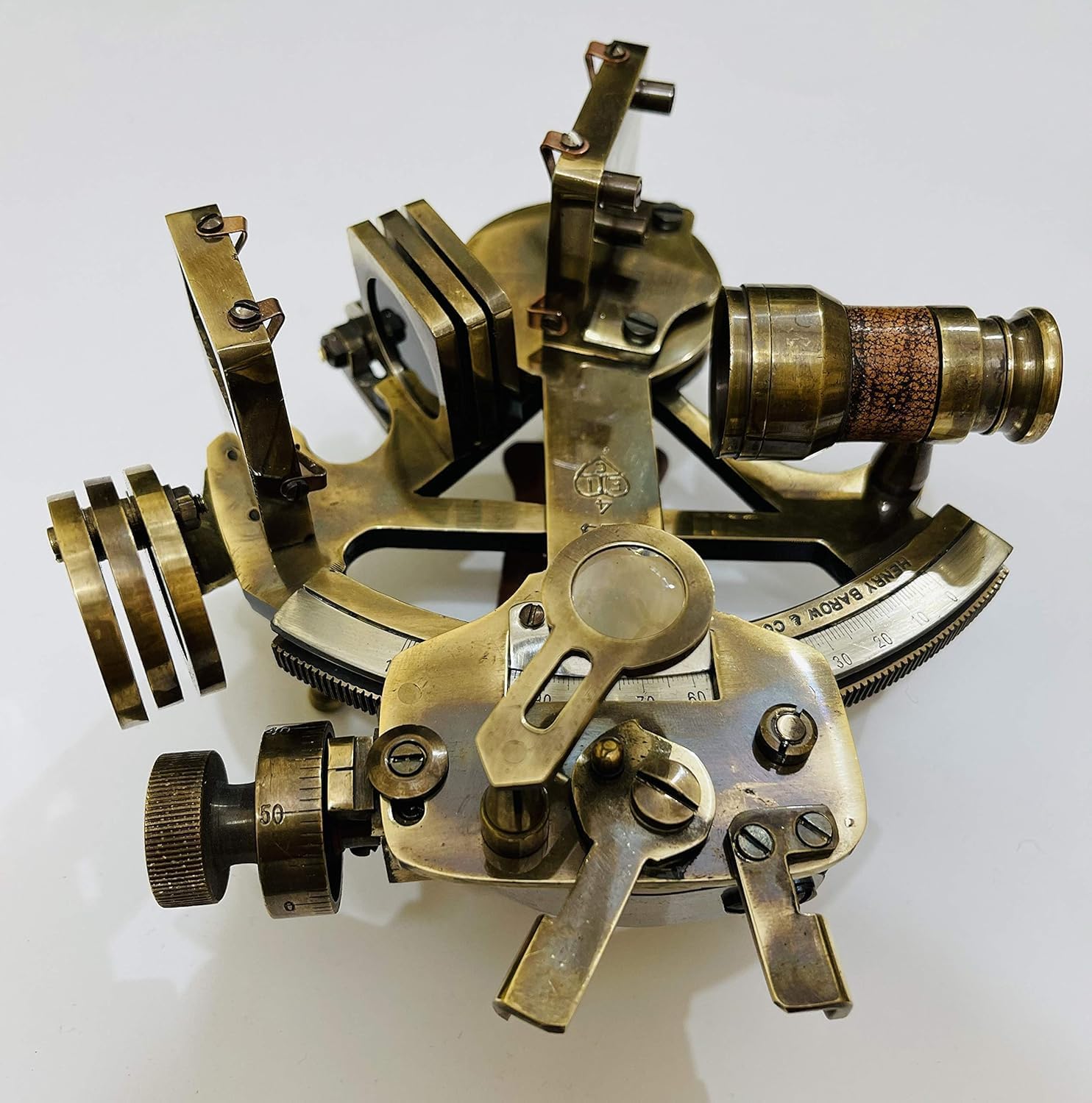 Experience the craftsmanship of classic maritime navigation with this Hand-Made Solid Brass 6" Sextant. Featuring a traditional micrometer drum, rich antique finish, and working parts, it’s a striking blend of function and decor. Whether displayed in a study, office, or ship cabin, it’s a perfect tribute to the age of exploration.