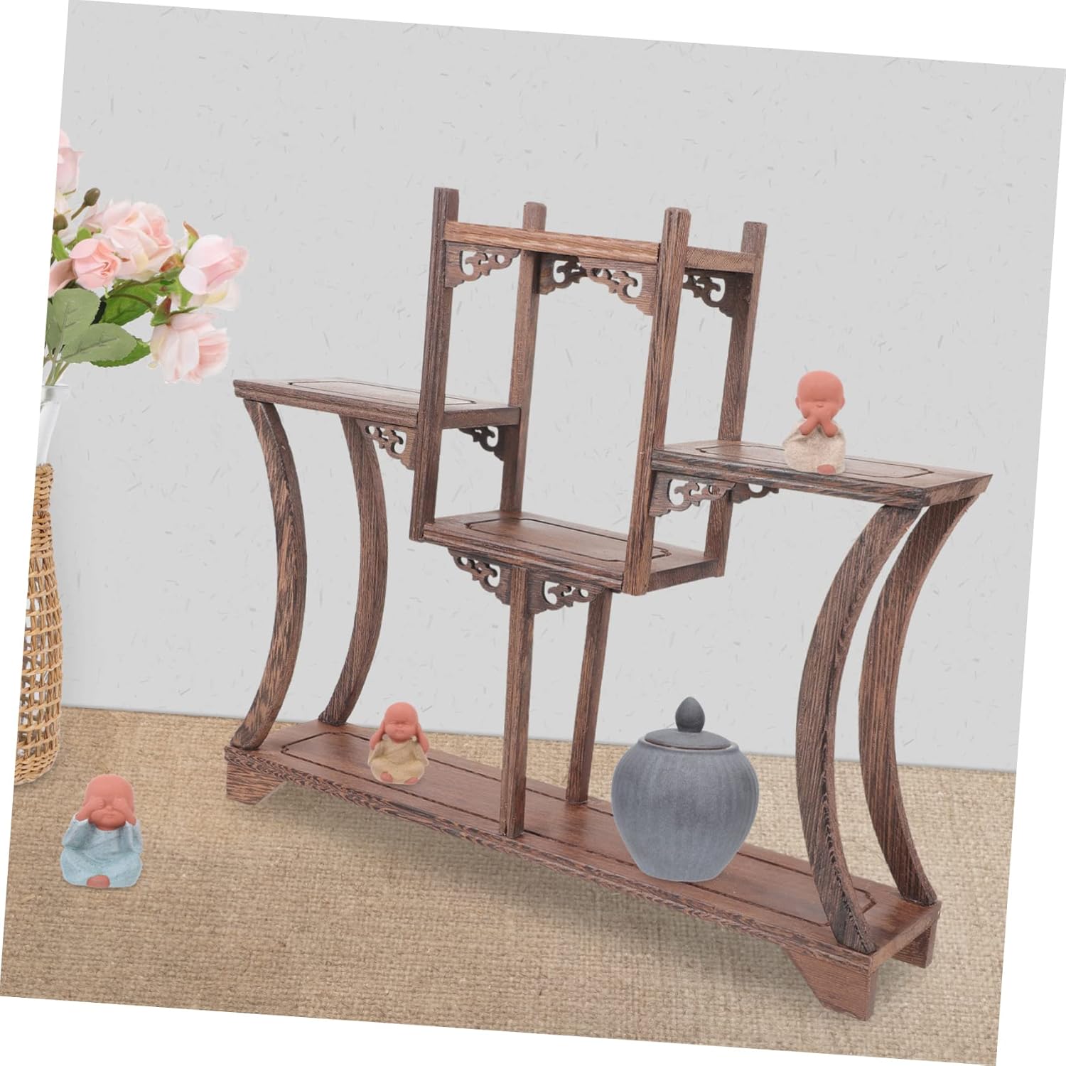 Package Include 1 x Storage Rack Characteristics -Material:Wood retro display stand -Color:Coffee antique storage rack -Size:34.00X31.00X7.00cm/13.36X12.18X2.75in ornament rack - Chinese style design fits variety of room decoration, adding some variation to your desk vintage display stands. - Put it on your desk, it looks elegant and charming, highlighting your wooden crafts. - The base is stable, the whole structure is reasonable, prevents antique to overturn curio rack. - Break the dull feeling of space, , suitable variety of scenes of space matching antique storage shelf. - No matter it is placed in room, study, office or tea house, it can show different tastes antique holder.Goods Descriptioncurio display stand This curio display rack is made of wood material, which can withstand the long-lasting use.wood display stand It is widely used in home, office, shop, store and so on.wood stand It comes with the simple and practical design, which is unique and decorative