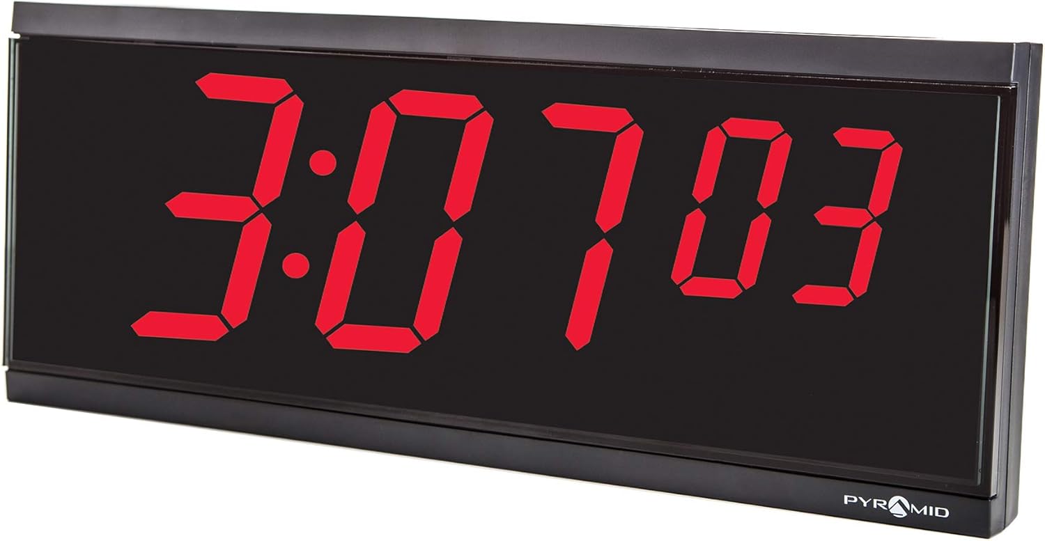 Pyramid Time Systems Extra Large Stand Alone Digital Clock, 4" Numeral Red LED Display, 6 Digit (Hour, Minutes, Seconds), 110V, 6' cord, Stand-Alone, Made in USA (DIG-6B)