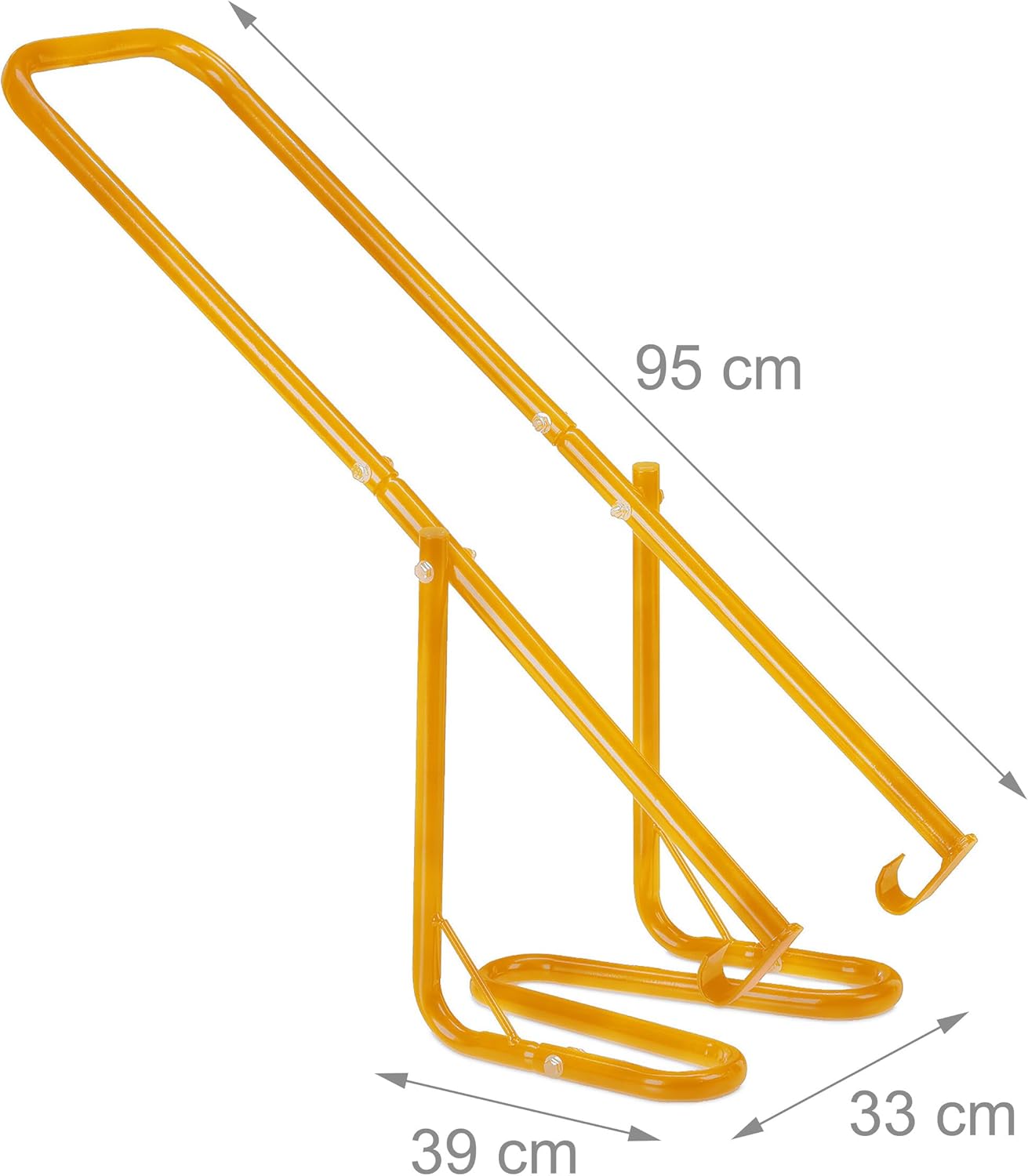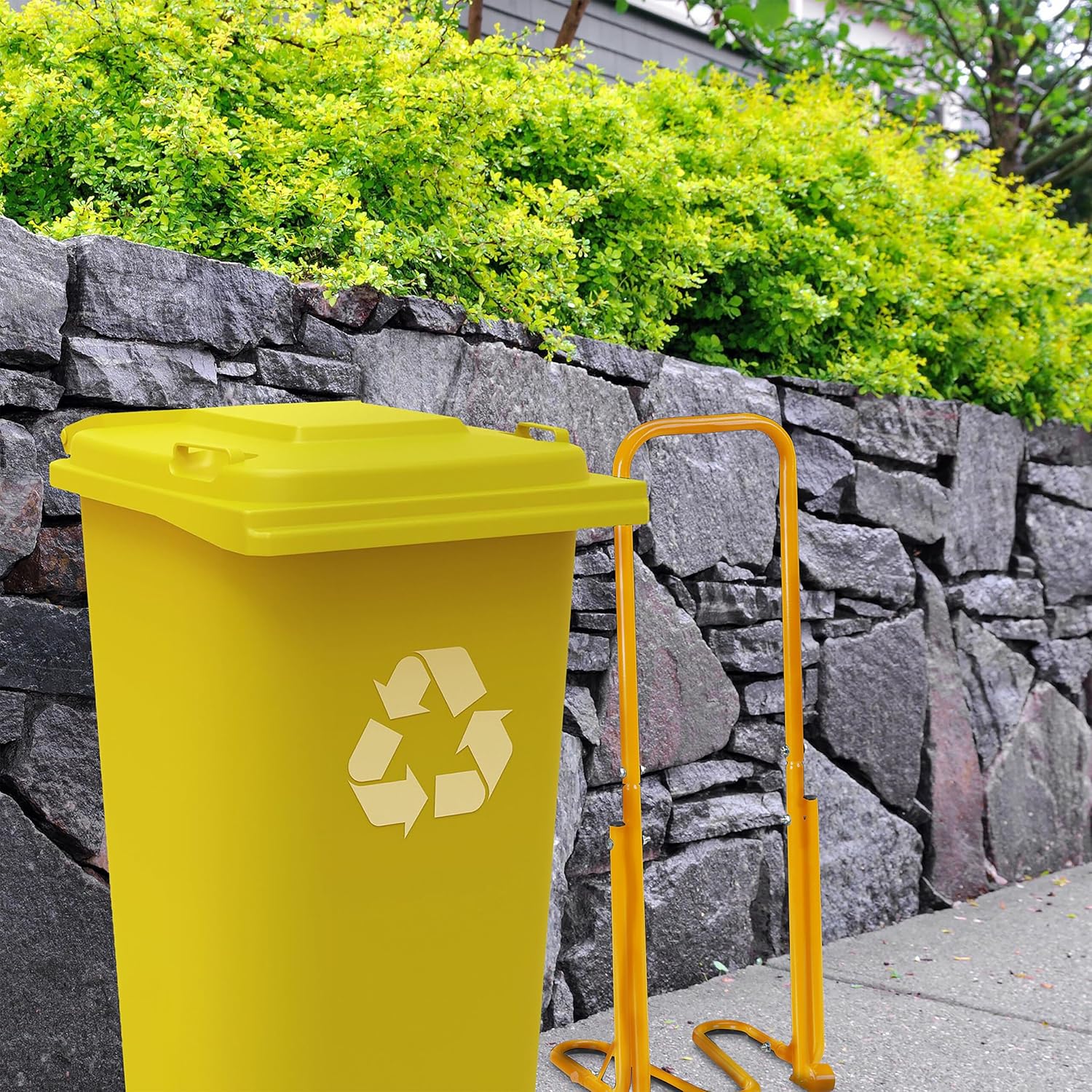 With this manual steel household waste compactor, you can reduce the volume of residual waste, plastic, paper, and other items in your bin with ease. Your bin will need to be emptied less frequently, saving you time, space, and a significant portion of your waste disposal fees. Simply hang the practical waste compactor on the hinges of the bin, position it over the waste, and slowly press down the long lever. This safely compresses the waste and creates space for new refuse.Waste compactor details- Length of lever: approx. 95 cm- Dimensions W x D: approx. 33 x 39 cm- Material: steel (powder-coated)- Colour: yellowManual waste compactor for household waste- Compress residual waste, plastic, paper, and other household refuse- Suitable for standard bins with a volume of 60 to 240 litres- Ideal for homes, apartment buildings, or businesses- Lever function requires minimal effort- Stable during the pressing process thanks to the wide support surface- Less frequent emptying of the bin saves money- Easily hang on the back of the bin when not in useIncluded in delivery- 1x waste compactor in individual parts- Assembly materials and instructions- Decorative items are not included in the delivery