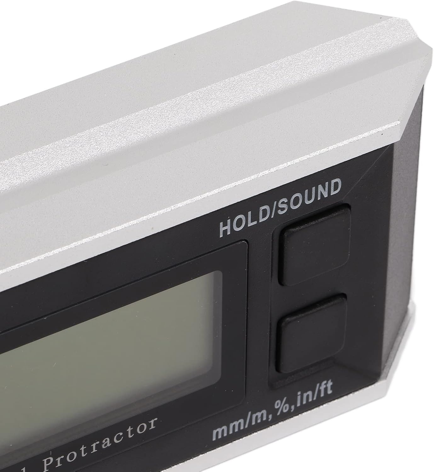 1. [Durable Material] This inclinometer is made of aluminum alloy and ABS material, which is sturdy and durable and can be used with confidence. 2. [LCD Digital Display] LCD high definition large digital display, placed upside down, the digital automatically flip, the measured data is clear at a glance, and the reading is . 3. [Precision Machined] This inclinometer has accurate measurement results, easy to use, small in size, and easy to carry. 4. [With Variety Of Reading] Multiple readings of mm/m, %, in/f can be switched to meet your measurement needs. 5. [Widely Application] Widely used in bridge framing, railway paving, civil engineering, construction, decoration, industrial automation, intelligent platform, mechanical processing, etc. Spec: Item Type: Inclinometer Material: Aluminum alloy+ABS Power Supply: 2 x AAA 1.5V (Battery Not Included) Application: Angle measurement Accuracy 0°~90°≤0.10° Others≤0.15° Resolution 0.05° Range 4 x 90° (0~360°) Repeatability ≤0.10° Working Current ≤8mA Operating Temperature 0℃-40℃ Relative Humidity ≤80% When the inclinometer is upside down, the data displayed on the LCD will automatically flip up How to Use: 1. In the ON/OFF shutdown state, press once to turn on the device to enter the absolute measurement mode, and press again to turn off. The display automatically turns off without induction within 5 minutes, prolonging battery life 2. ABS/LIGHT Short press to display the "REF" to enter the relative measurement mode, press again, the "REF" disappears and enter the absolute measurement mode. Long press the backlight to turn on (with backlight) 3. Press HOLD/SOUND once, the "H" is displayed, and the current value is locked; press again to release the lock and the disappears; long press this key to display the buzzer ; the angle reaches 0°±1°, .30°, respectively The buzzer will sound within the range of ±1°, 45°±1°, 60°±1°, and 90°±1°. Long press this key again, the buzzer function is released and the disappears. 4. When the mm/m, %, in/f , ° is displayed, each time you press, the unit will switch to %, mm/m, in/ft, °, and cycle switching Package List: 1 x Inclinometer (Battery Not included) 1 x Manual Note: This inclinometer has been pre calibrated before leaving the factory, and it can be used after installing the battery (battery not included)