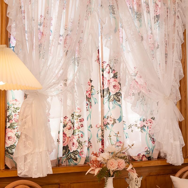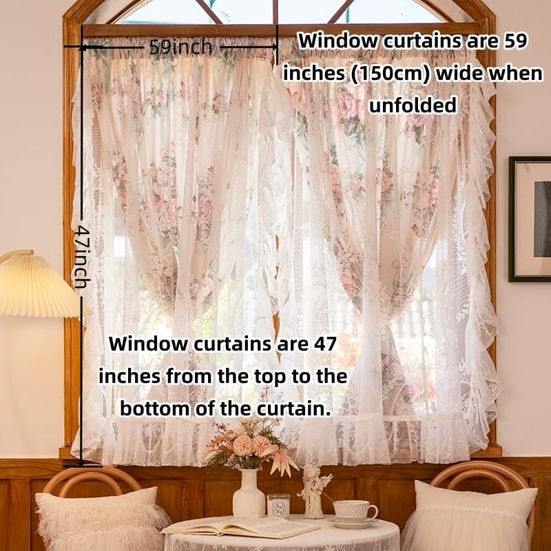 Short Curtains Double Layer Rose Lace, Kitchen Bathroom Closet Rod Through Short Curtains