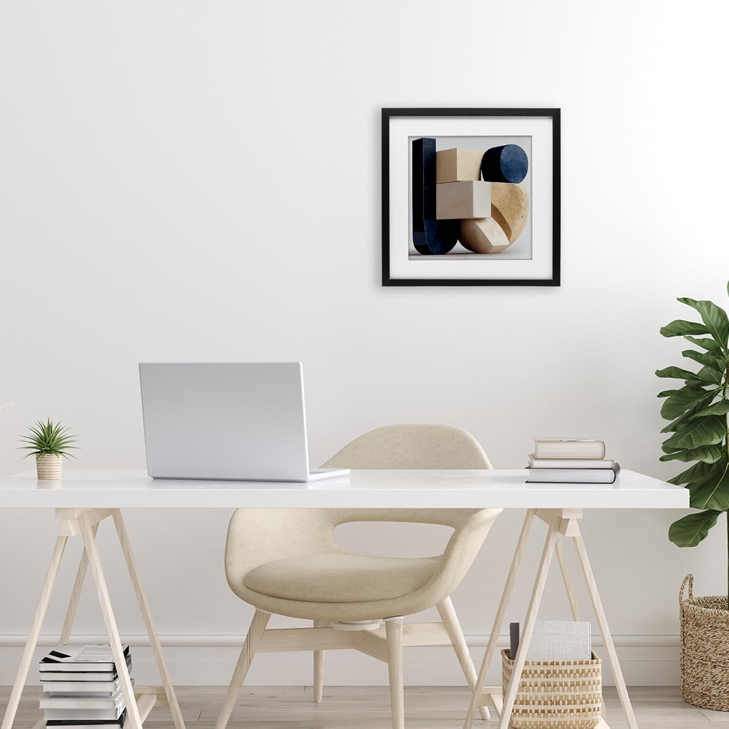 Our Framed Print Under Glass is a modern way to display art with a crisp, clean finish. A digitally printed paper is framed with a white mat under durable PETG plastic. The bevel cut mat is made of paper pulp mat board. The frame is constructed from real wood with a wrapped finish. It includes a pre-installed sawtooth hanger for easy hanging. Available in black, birch, gray and white finishes.