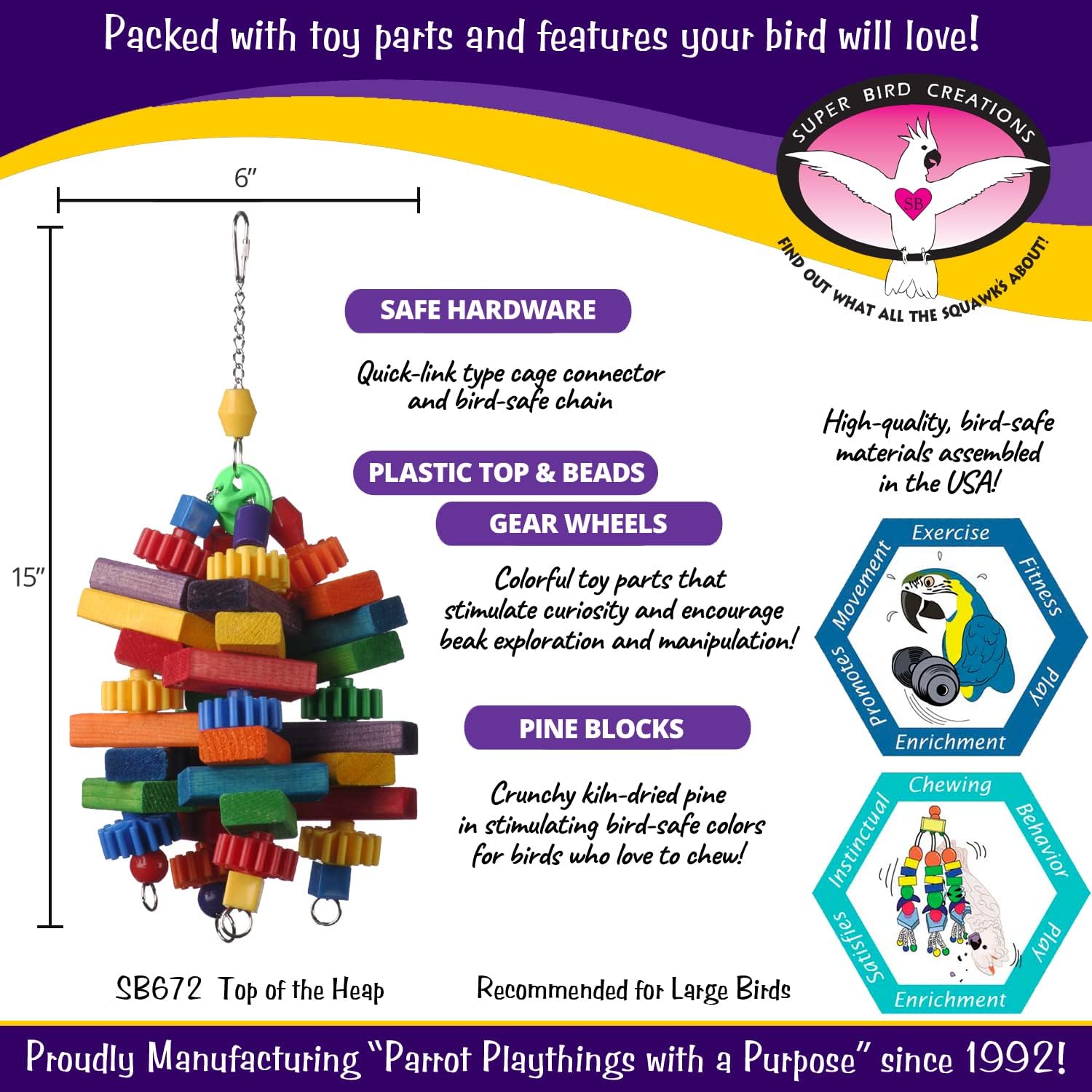 The top of the heap toy is made with heaps of wooden blocks layered with plastic gear wheels and Jumbo plastic beads.