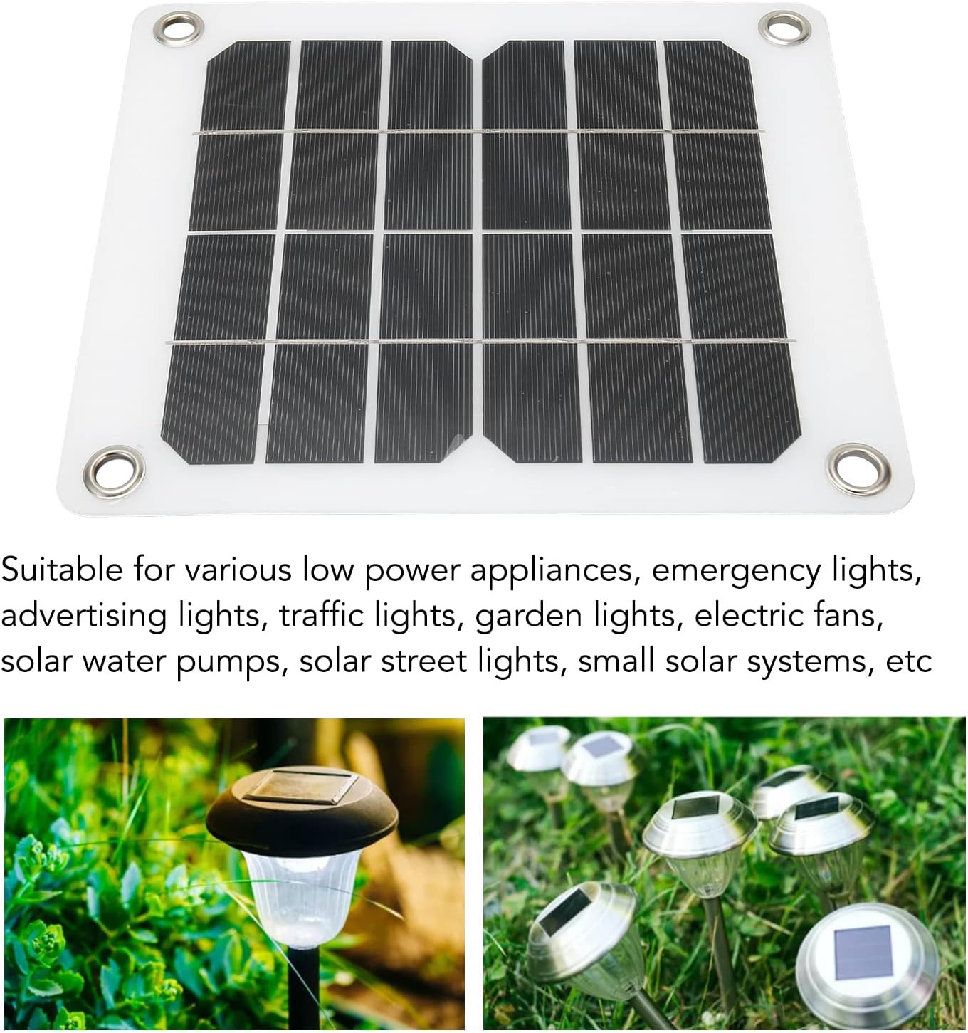 Features:1. High-Efficiency Mono-crystalline Solar Panel:20W power, 5V stable output for efficient solar energy conversion.2. Direct USB Charging:Built-in safe USB port for direct charging of phones, tablets, and more.3. Portable Durability:Lightweight design, ideal for vehicles, boats, RVs, and outdoor.Item Type: Solar PanelMaterial: ABSPower: 20WWorking Current: 0-1000mAWorking Voltage: 5VOutput Port: USBPackage List:1 x Solar Panel4 x Suction Cup2 x Carabiner1 x Instruction Manual