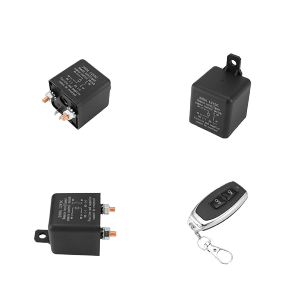 Wireless Remote Control Kit for Car Intelligent Breaker DC12V Disconnect Isolator Relay Voltage: DC12V Construction: PA nylon casing, fire resistant. Accessories: Includes copper terminals and silver contacts for installation and conductivity. Function: Designed for power transmission with oxidation-resistant silver contacts. Application: Suitable for cars, trucks, RVs, trailers, campervans, ATVs, UTVs, boats, and farming vehicles. Working voltage: 12V Operating current: 200A Rated frequency: 433MHz Receiver sensitivity: -105dBm Remote control distance: 30 meters Transmitter output power: ≤10dBm Transmitter functions: Off, on, lock, stop Color: Black Material: Plastic and metal Package contents: 1 x Remote Car Disconnect Relay Set Notice: This replacement item is produced by an independent supplier.All brand and model mentions are for compatibility purposes only.